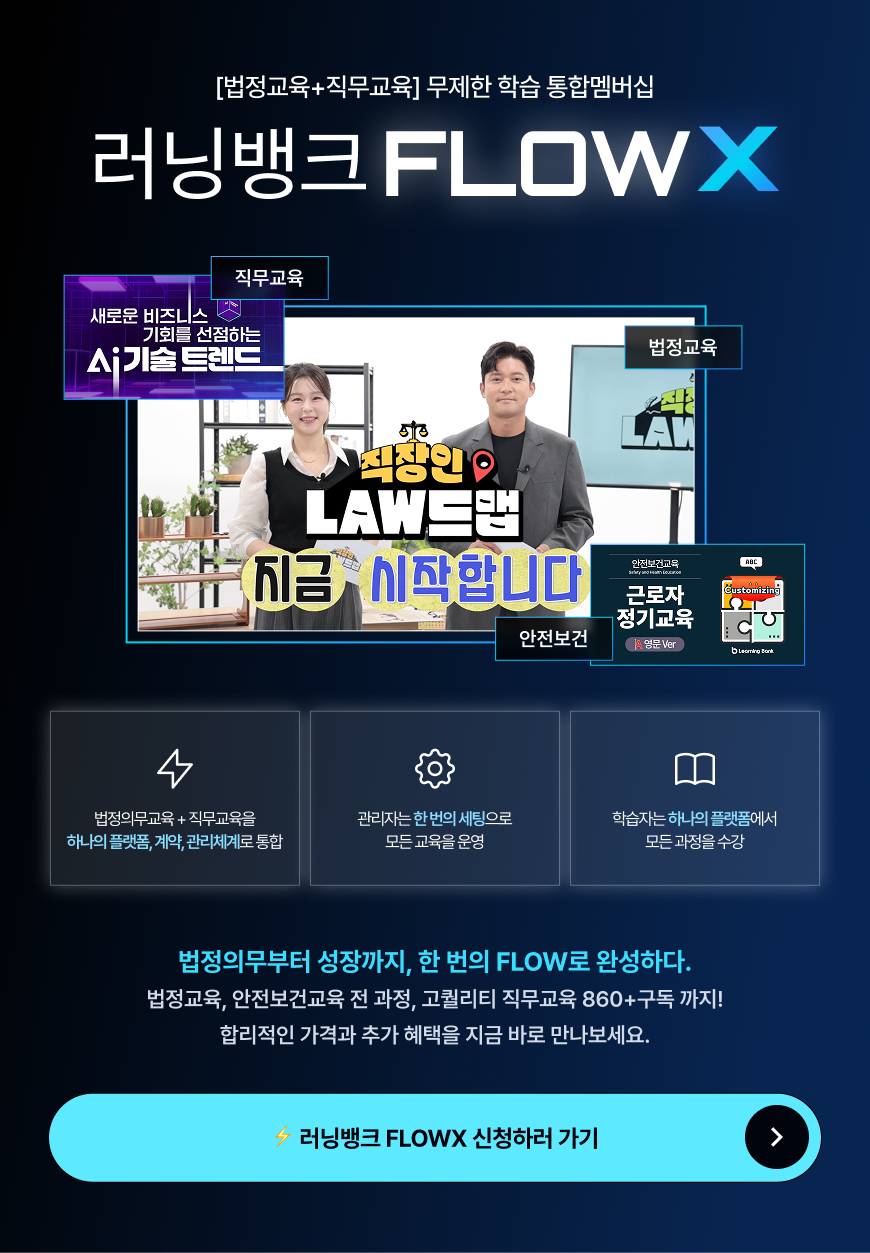 법정+직무교육 무제한 멤버십 [러닝뱅크 FLOW X] 출시!